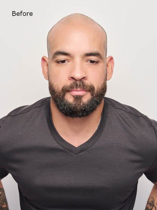 The full monofilament top gives a low-density, realistic look to this hunky hero hair.