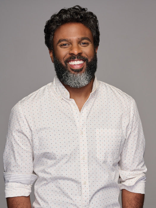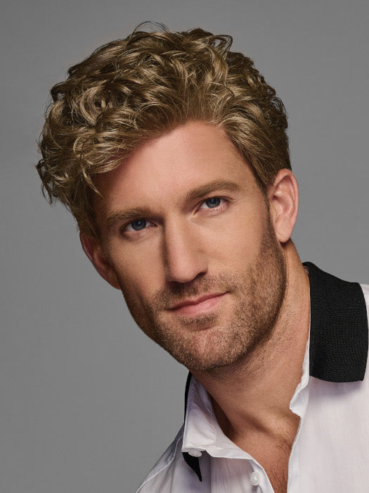 Get ready to be charmed by the soft, smooth curls of this charismatic cut. With shorter, natural waves at the sides and back, the look is boy-next-door adorable. Purposely designed longer lengths around the ears and at the nape are meant to be custom cut to suit his style. Heat-friendly synthetic hair is easily smoothed straight if desired.